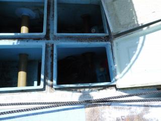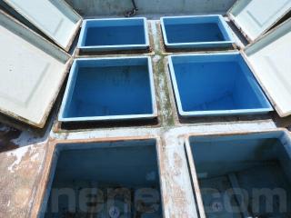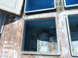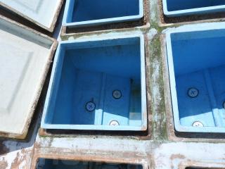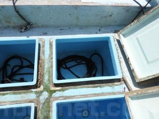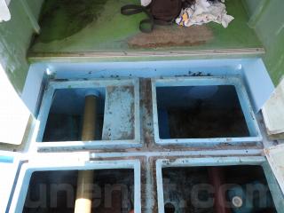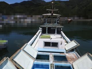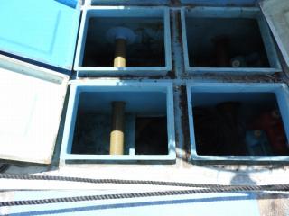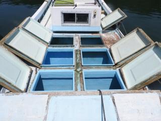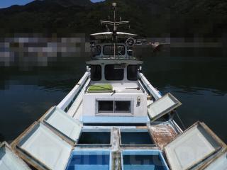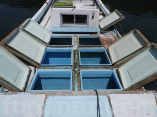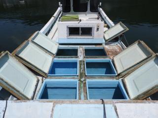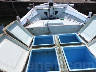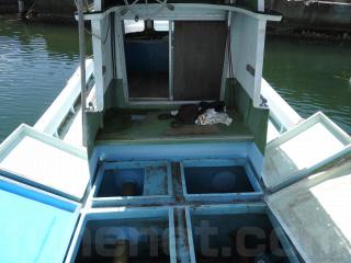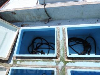 ◆前側デッキは4間のイケスも大きく、魚は積みそうです。