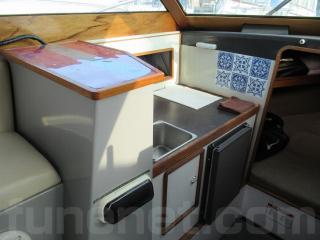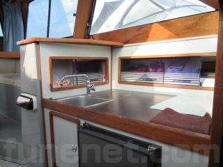 船内には家庭用エアコン、電動マリントイレ、シンク、冷蔵庫、TV、ステレオ等も装備されています。