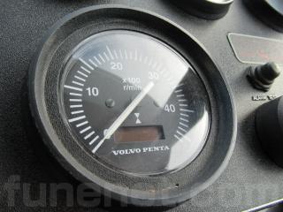 巡航速度は20ノット、最高速度は25ノットです。燃料タンク容量は380リットル、清水タンク容量は70リットルです。アワーメーターは右舷は不明、左舷は719時間です。