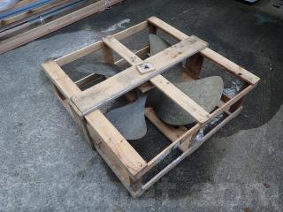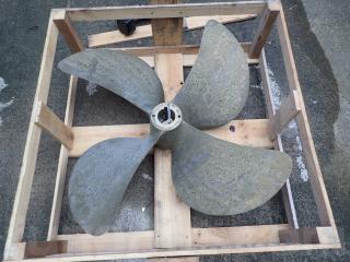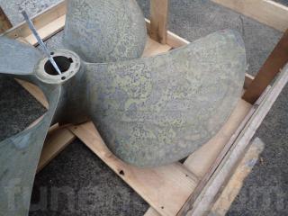 こちらの4枚プロペラは、以前は金目船12トン(700馬力)製で使用されていた様です。船の事故の際に、プロペラを取り外しして保管したままの状態です。修復歴はないようです。