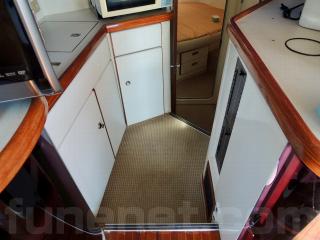 ◆ダウンギャレーを過ぎ、左手には使い勝手の良いミッドバースが用意されており、ご家族・ご友人たちとの船内パーティーやマリーナステイには、大変重宝されるスペースです。