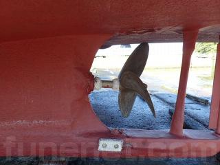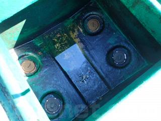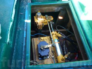 〇とも側のハッチ内(舵角室)に油圧シリンダーがあります。油圧がダメになった場合でも、梶棒が取り付けられる用にもなっています。