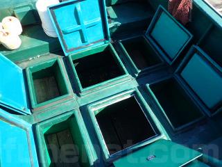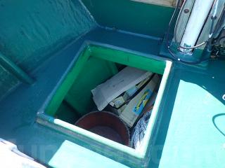 〇おもて側中央のハッチは、イケスと氷蔵、両サイドは物入れが可能な収納スペースが確保されています。問題なくご使用できます。