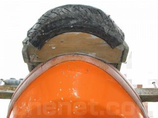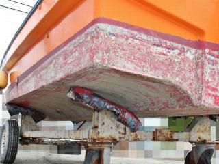 ◆船体はオレンジに塗装されて本来の船体色は不明ですが、航行に影響があるような大きな損傷などは無いように見受けられました。また、現在は陸上に揚げて保管されていますので、取材時には船底の写真も撮影させていただきましたが、こちらも航行に影響があるような大きな損傷などは無い様に見受けられました。なお、現在も陸上保管されていますので、船底の様子も確認可能です。