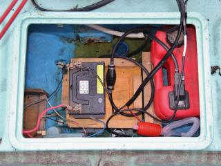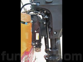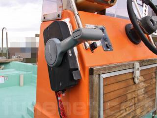 ◆操舵はワイヤー式で、比較的最近ワイヤーを交換されたとの事で取材時は軽く動きました。なお、船外機の始動、チルトの上下は操船部に居ながらにして操作可能です。