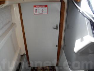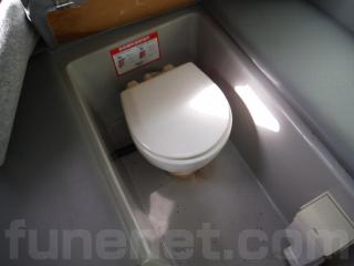 バウキャビンにはマリントイレがあり、オプションのキャビンドアがありますので、個室トイレの様に使用出来ます。