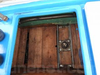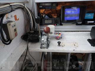 ◆操船は視界も良くし易そうです、船室の入り口の左舷天上にラットと馬力ハンドルを据付しています、其処で操船も出来るようです。