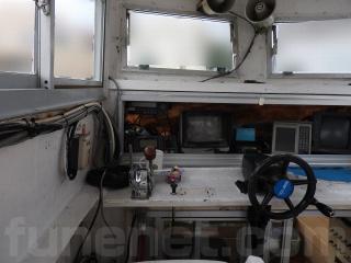 ◆ブリッジは2段式です、上段で操船をされています下段のブリッジにはサイドの開き戸から出入りします、後方は船室です下段のブリッジとつながっていますので戸は狭いですが出入りも出来ます。