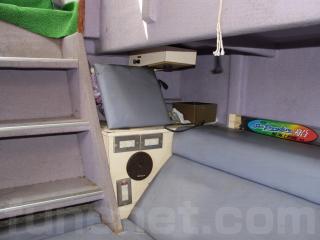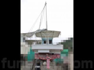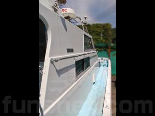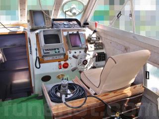 ◆漁業用としてはもちろんですが、キャビンは上下階2フロア併せますとそれなりの人数で雨風をしのげる広さがありますし、電動マリントイレも付いていますので、居住性を生かした趣味の釣り、遊漁船や作業・運搬船・通船のベースとしても使えそうな船体です。また、操船席廻りには機器は古いものの扶桑製GPS魚探、日本無線製レーダー、ユニカス製のオートパイロット、三連リモコンが、アフトデッキにはスパンカー、オーニング、フロントデッキには電動アンカーウィンチなどが艤装されています。