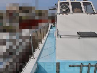 ◆取材時はまだ施工の途中でしたが、ミッドシップのブルワーク両舷には高めのレールがで装着されていますので海上でも安心です。(レールの写真とともに別項目でご紹介させていただいております。)なお、右舷側だけ取り付けた写真がNo,19tとNo,27です。現在は左舷側にも同じレールが取り付けられています。