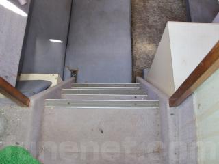 ◆この艇の大きな特徴のもう一つがデッキです。フロント・リアデッキはフラットで歩き易いですが、ミッドシップ(キャビンの両舷)は一段高くなっています。フロントデッキ(オモテ)からの段差は写真No,12で、また、アフトデッキ(トモ)からの段差は写真No,38でご確認いただけます。