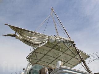 ◆船体で特徴的なのは大きなキャビンです。アフトデッキ(トモ)には大きなオーニングも備わっていますので、荒天時も濡れずにすむスペースが広いこの艇をどう生かされるかは新しいオーナー様次第です!
