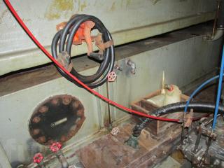 燃料タンクは右左にありますが、現在は左のバルブは締めて、右のタンク300Lのみを使用されているそうです。