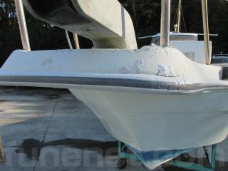 船底には塗装の経験がありますが、現在はマリーナさんに陸上保管されていますので、塗装を剥がして表面を滑らかにしています。