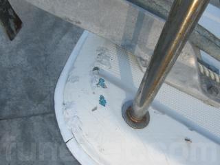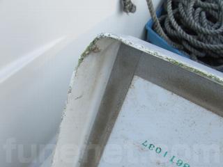 ここもフロントデッキと同様に通常の使用時についたと思われる、スレや小傷などもありますが、年式の古い艇によくありがちな、表面がブアブアしているところはありませんでした。