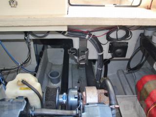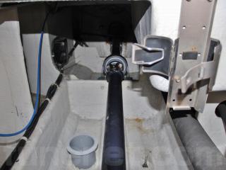 ◆アフトデッキ(トモ)の最後尾サブタを開けるとドライブのチルトモーターや油圧操舵部が見えます。外観上はオイル漏れなど無く特に問題は無いように見受けられました。