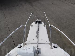 ◆フロントデッキには、バウスプリット、電動アンカーウィンチ、バウレールなどが艤装されています。バウスプリットからバウレールにかけてもしっかりしていました。アンカーウィンチが装備されていますので、流し釣りだけでなくアンカーを打つ釣りも楽しめます。