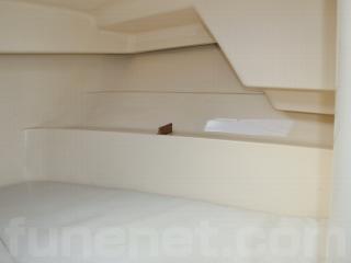 ◆コクピットの前には1段下がってVバーススペースがあり、ここはベットスペースや釣り具置き場に使えます。