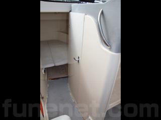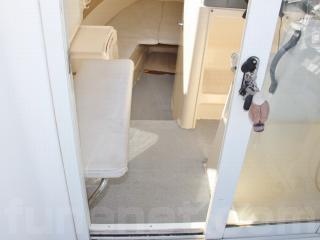 ◆ヤマハFC-26はセミウォークアラウンドでキャビン横までは通路があるデッキ構造になっています。また、Vバースも広く個室トイレもあり、キャビンには可倒式のベンチシートが装備され、リアドア付きなので複数人での冬季の釣行にも良さそうです。オーナー様はこの艇で主に瀬戸内海で餌釣りを愉しまれていますので、8.4インチカラー液晶GPS魚探やアンカーウィンチも装備され、また、アフトデッキにはセカンドステーションも備わっており2ヵ所で操船も可能ですのでオールラウンドなクルージングや釣りを楽しめそうです。