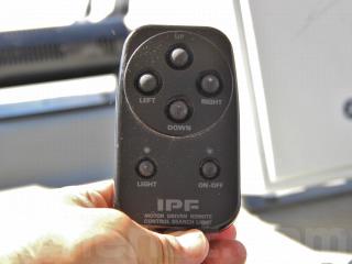 ◆コクピットにはヤマハ製の8.4インチGPS魚探YFRⅣ-F66iが備わっています。また、IPFのサーチライトがルーフについていますが写真No.14のリモコンでライトの向きを変えられます。