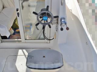 ◆アフトデッキにはデッキライト、リアドア右側後ろににはセカンドステーションが装備されており、イスに座ってここでも操船可能です。