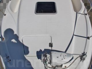 ◆デッキは硬く、ノンスリップの状態も良好です。ヤマハFC-26はセミウォークアラウンドでキャビン横までは通路があるデッキ構造になっています。写真No.15~20でご確認下さい。