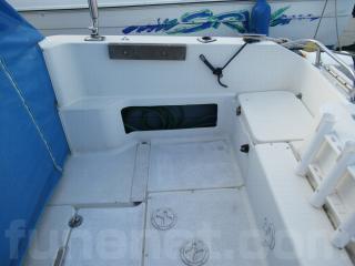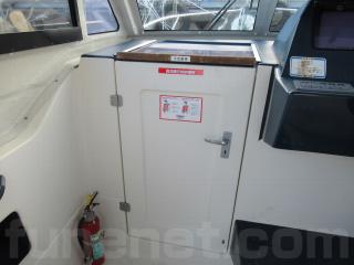 キャビンがあり、トイレの装備もありますのでとても使い勝手が良い艇です。艇の大きさや船外機エンジンというメンテナンスの便利さを考えますと、ご興味を示される方が多いのではないかと思います。