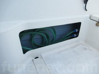 主だった装備品はアンカー、ロッドホルダー、デッキウォッシュ、デッキシャワー、スイミングラダー等が装備されています。エンクロージャーも装備されていますので、とても便利です。