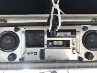 操船席上部には、無線機とKENWOODのオーディオ、スピーカー等が装備されています。