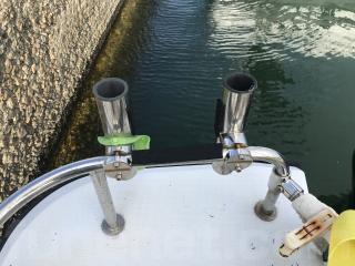 左舷後方のシートは、現在ロッドホルダーがつけられている為