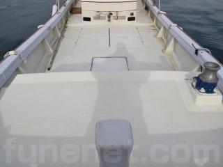 ◆ヤマハDX-36Cはデッキはフラットでオモテからトモまで歩き易い船です。現状の仕様としてはGPS魚探等と電動アンカーウィンチを備えていますので、ルアー、鯛ラバ等の釣りからアンカーを打っての餌刷りなども可能です。また、低めの舷とフラットなデッキで運搬・作業船としても使いやすそうです。