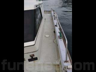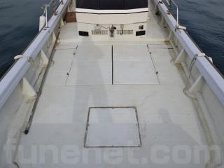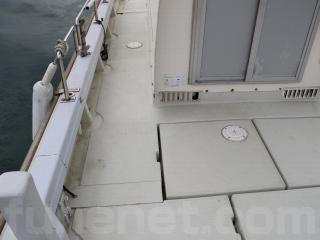 ◆平成5年進水の艇です。船体のゲルコートは船齢なりの日焼けなどによる経年劣化は見受けられますが、オーナー様はプレジャーユースで平成5年進水のDX-36Cとしては綺麗な部類ではないかと思います。デッキもしっかりしており、ノンスリップの摩耗も少ないように見受けられました。