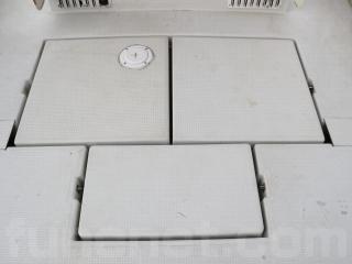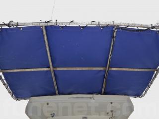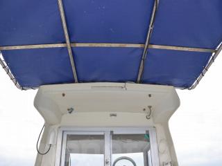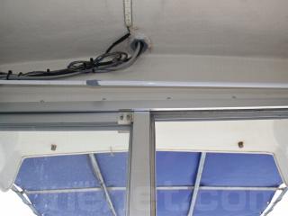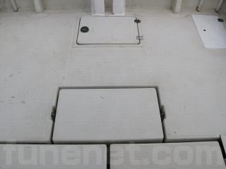 ◆トモ(アフトデッキ)のオーニングテントは大きな破れなどは無いように見受けられました。また、オーニングの下にはLEDテープライトが2か所に取り付けられていますので、暗い時でも作業はし易そうです。また、トモにはストレージが2間あります。船尾には竿やスパンカーが取り付けられるようなベース柱があります。(写真No.42)