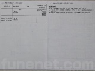 ◆船体やエンジンの型式、定員、用途、登録上の船体寸法、航行区域、航行上の条件、進水年月日、検査の状況などをご確認下さい。