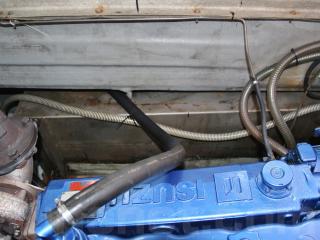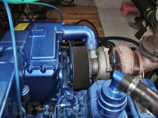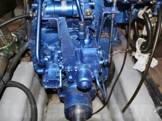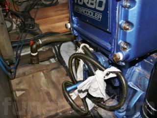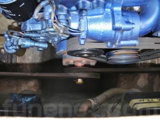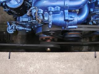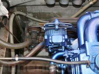◆エンジンの前、プーリーには右舷側にオイルポンプ、左舷側にオルタネーターとセレックスポンプを駆動させるVベルトが掛かっていました。これらの回転機器から異音等は感じられませんでした。
