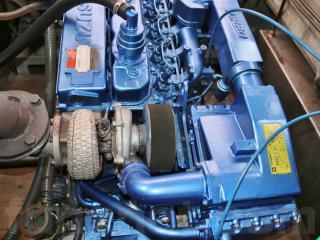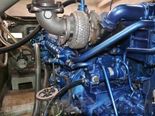 ◆エンジン、エンジンルーム内も綺麗にされています。搭載エンジンはいすゞ製のインタークーラー・ターボ付き直列6気筒ディーゼルエンジン、UM6BG1TCX2(連続最大出力285PS/2,700rpm)を搭載しています。また、取材時のエンジン・ランタイムは約5,814時間でした。オーナー様は現在も釣行に使われていらっしゃるのでランタイムは少しづつ増えると思われます。また、マリンギアは新潟コンバーター製の微速装置付きですが、現在微速装置は使っていらっしゃらないとの事でした。