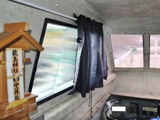 ◆操船席廻りには、ホンデックス製の10.4インチカラー液晶デジタルGPS魚探HE-7311-Di、ユニカス製のオートパイロットED-10、光電製の1W漁業無線機DS-28などが備わっています。なお、オートパイロットはプロッターとの連携はなされていません。また1W漁業無線機は旧スプリアス規格品です。