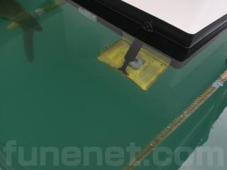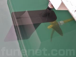 ◆取材時は係留状態でしたので船底の確認はできませんでしたが、2018年12月にドッグ揚げされて船底塗装をされた際には特に問題は無かったとの事です。船底形状はスタンダードで、シャフトはブラケット保持です。プロペラはペラクリーンも塗布されていらっしゃいます。また、船尾にはフラップが付いています。