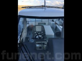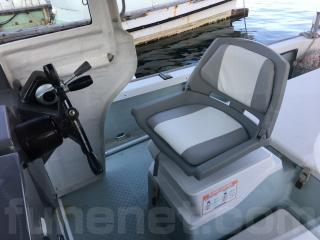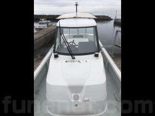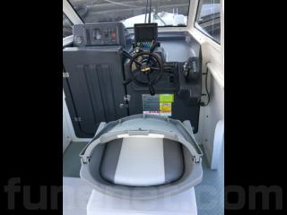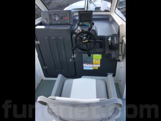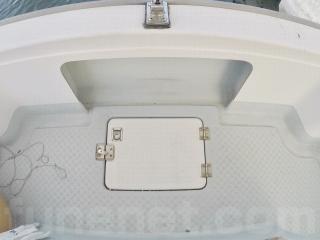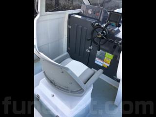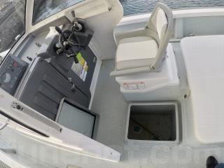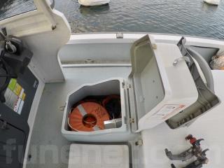 中央に設置されたハードトップキャビンは風やスプレーを防ぎ快適な走行を実現します。またキャビン袖部は操船席から操船しながら釣りが行える形状に設計されてます!操船席左舷側足下には生簀も備えられていて釣りに最適な仕様となってます!