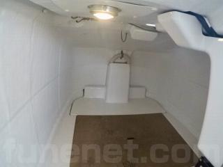 キャビン内部バウバースは大人が横になれる広い空間が確保されてます。敷板下には釣竿などを収納できる長尺スペースも設けられてます。