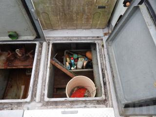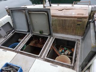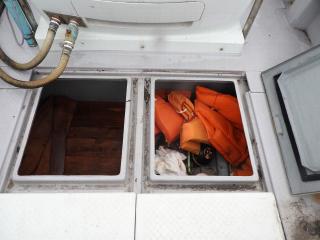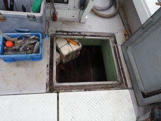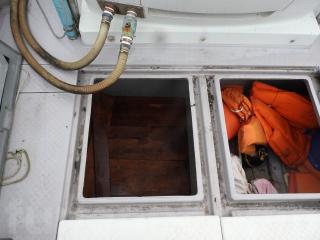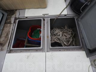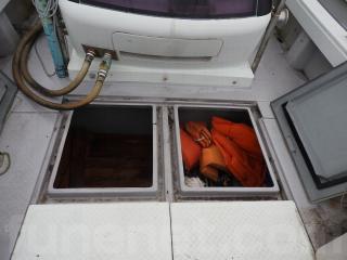 ◆デッキは硬く良好です、前デッキには大型のイケスと物入れが有ります、各ハッチも問題なく使用できます、フラットなデッキ仕様です。
