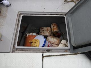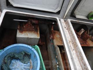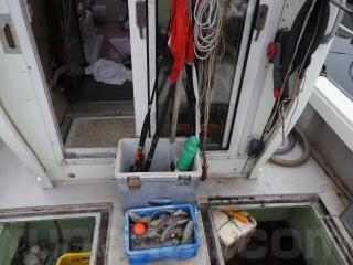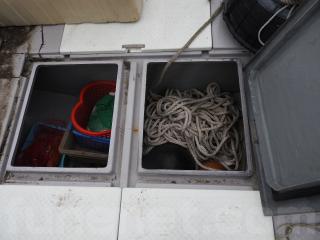 ◆艫デッキは物入れとイケスが有ります、フラットなデッキで作業は楽です。
