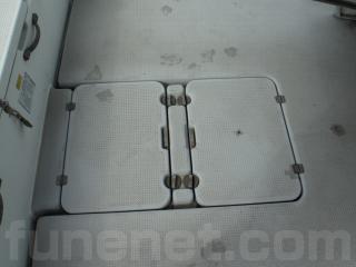 バウデッキ右側フロアは、この年式のUFシリーズの常でブアブア感があり、一部割れがありますので要補修です。