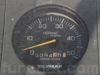 ◆エンジンはヤンマー製の過給機付き直列4気筒ディーゼルエンジン、4JH3-T(連続最大出力62PS/3,500rpm)を搭載しています。また、取材時、エンジンアワーメーターは約5,895時間を指していましたが、これは前オーナーさんがエンジンを載せ替えられているので、信憑性は定かではございません。またランタイムは今後、大きく増える事は無いと思われます。