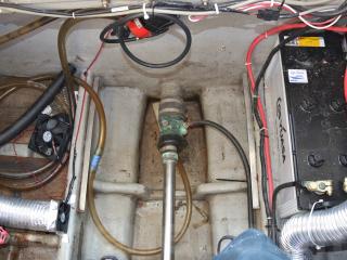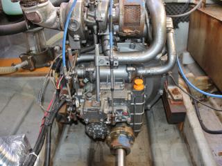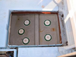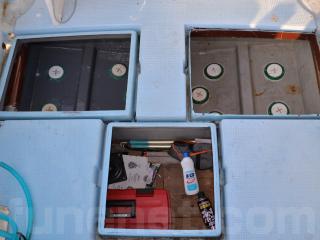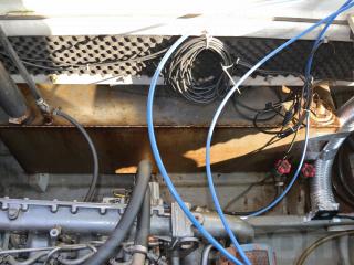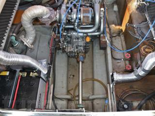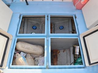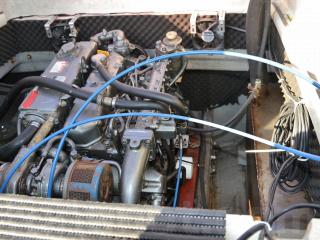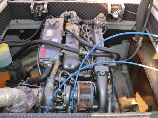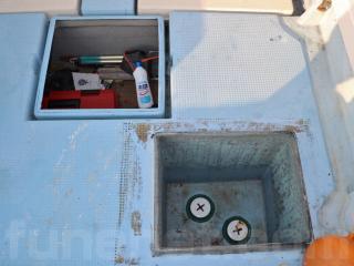 ◆サッシを開け、上部ボードを取り外すとエンジンが現れます。エンジンルーム内のコンディションも良好でした。エンジンはこの艇の前オーナーが載せ替えられたようです。その際にキングストーン廻りの交換、及びコシキも大型の物に交換されていらっしゃるようです。