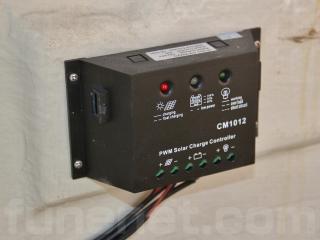 ◆ソーラーパネルもオーニング上に装備されています。また、チャージコントローラーもブリッジ内に取り付けられていらっしゃいます。