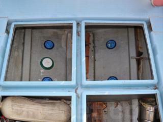 ◆トモの点検口からは、舵、プロペラ、排気管などが見えます。