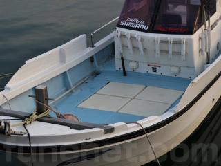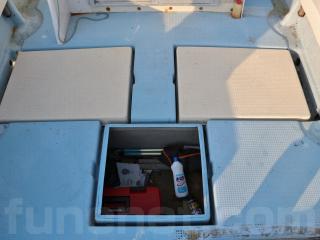 ◆ヤマハDX-25Cはデッキはフラットでオモテからトモまで歩き易い船です。現オーナー様はジギング主体の釣りをこの艇で楽しまれてきたそうです。また、DXは舷が低めですが、この艇はFRP加工で一段高く加工をされています。