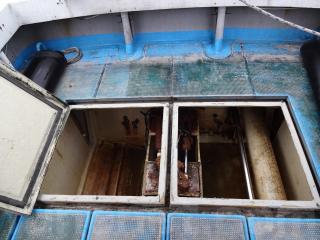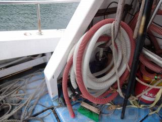ビルジポンプは故障しているので現在は簡易ポンプで船の清掃をされています。