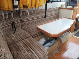 センターキャビンにはゆったりとくつろげるソファーとテーブルがありますのでお見えになったゲストの方々にも喜んで頂けるスペースになっております。